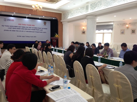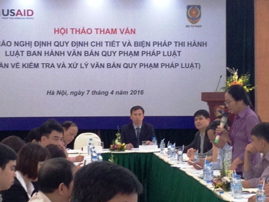 Về cơ bản, các đại biểu đánh giá cao dự thảo Nghị định được đưa ra lấy ý kiến tại Hội thảo. Trên cơ sở những gợi ý các vấn đề cần trao đổi, thảo luận của nhóm biên tập, các ý kiến tại Hội thảo chủ yếu tập trung góp ý trực tiếp nội dung, hình thức của văn bản. Trong đó có một số vấn đề nổi bật như: thời điểm xác định văn bản có dấu hiệu trái pháp luật và văn bản trái pháp luật, việc kiểm tra trình tự thủ tục ban hành như thế nào, hình thức xử lý văn bản trái pháp luật là bãi bỏ hay hủy bỏ, bãi bỏ trong kiểm tra, bãi bỏ trong rà soát và bãi bỏ trong kiểm tra có khác nhau không, hậu quả pháp lý của hình thức xử lý này như thế nào; trách nhiệm của người đứng đầu cơ quan ban hành văn bản trái pháp luật như thế nào...