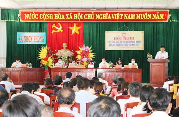 Tại Hội nghị, một cử tri xã Nhơn An đề nghị các ứng viên bổ sung các giải pháp hiệu quả để phòng, chống dịch Covid-19, giữ an toàn, ổn định phát triển kinh tế.