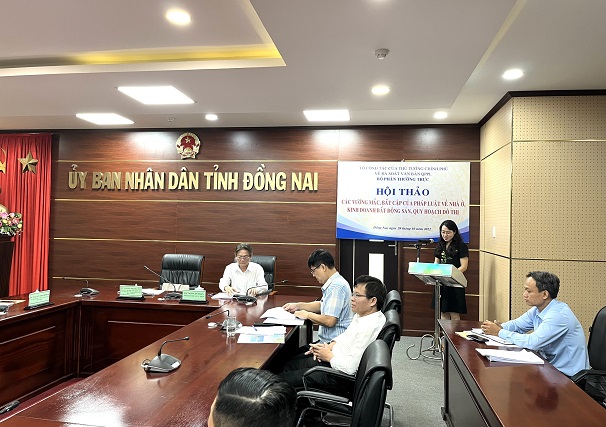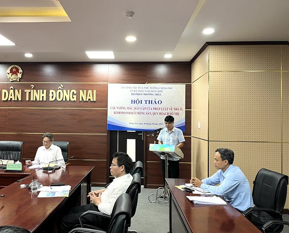 Tại Hội thảo, đại diện Cục Kiểm tra văn bản QPPL và một số Sở, ngành, hiệp hội, chuyên gia, doanh nghiệp hoạt động trong lĩnh vực về nhà ở, kinh doanh bất động sản, quy hoạch đô thị tại TP. Hồ Chí Minh và tỉnh Đồng Nai, từ vị trí, thực tiễn công tác, hoạt động của mình đã tham luận, phát biểu ý kiến về các quy định pháp luật mâu thuẫn, chồng chéo, bất cập, không phù hợp thực tiễn trong các lĩnh vực về nhà ở, kinh doanh bất động sản, quy hoạch đô thị; quan điểm, giải pháp hoàn thiện pháp luật về các lĩnh vực nêu trên trong thời gian tới.