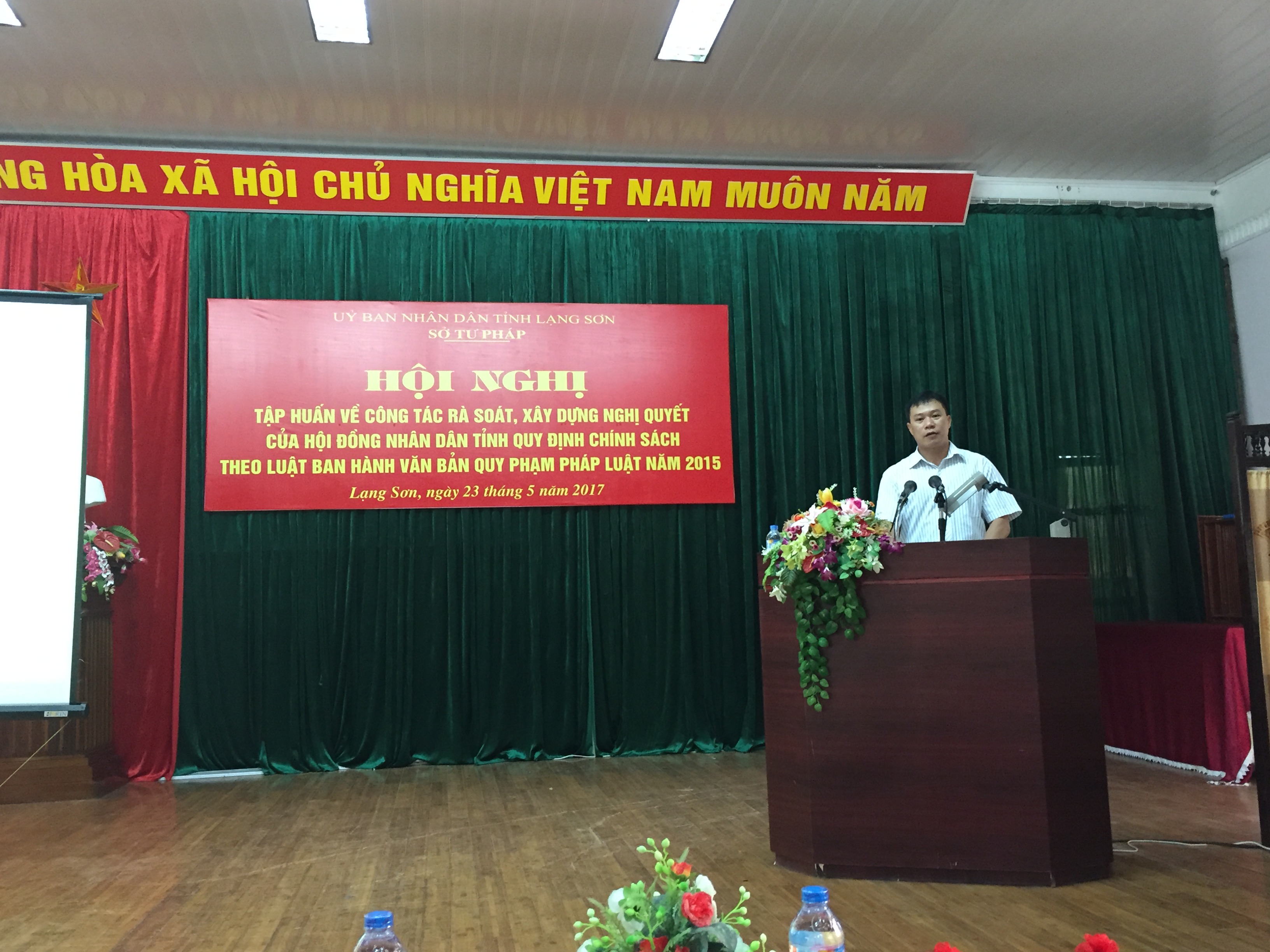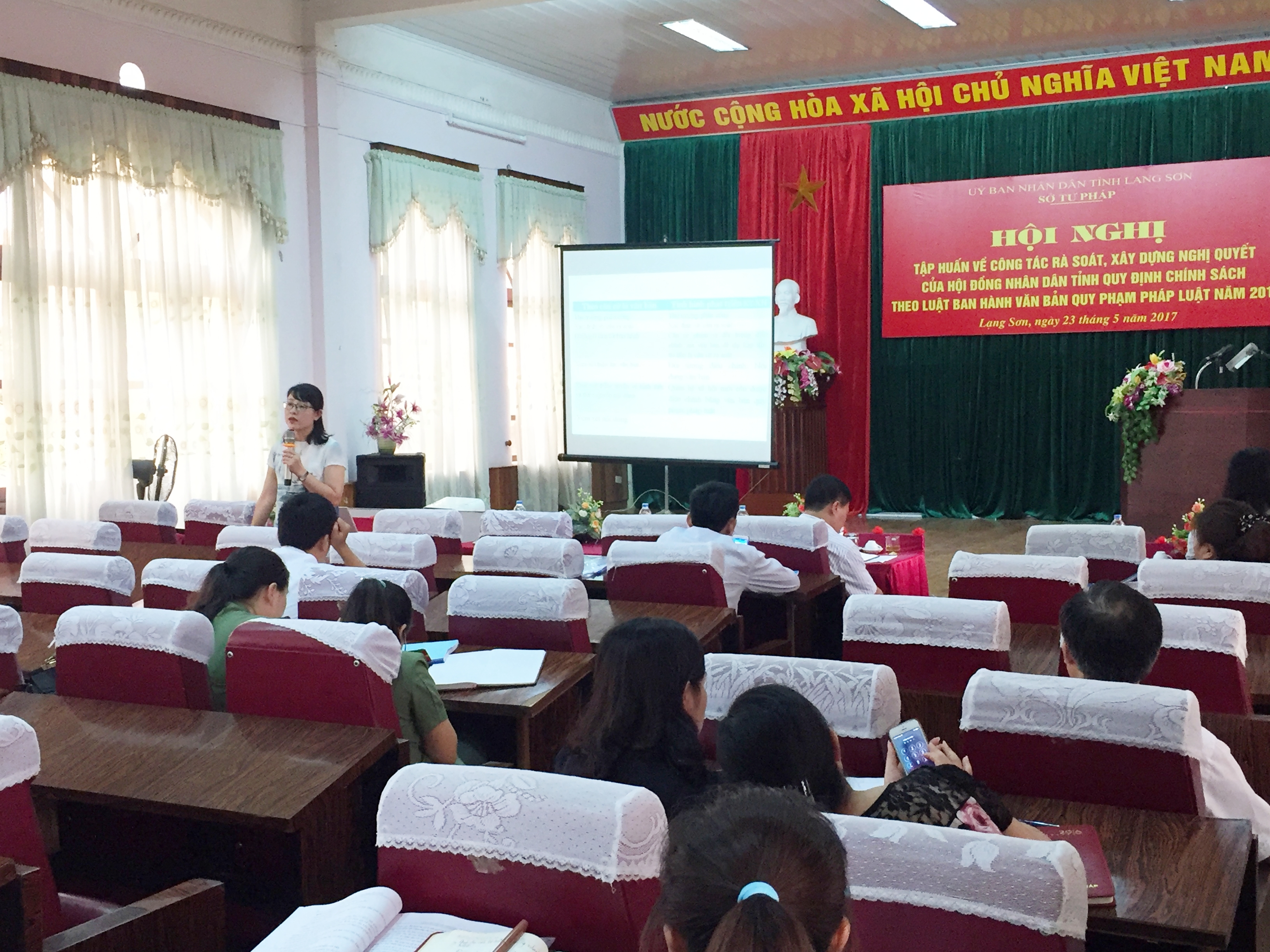 Để công tác văn bản quy phạm pháp luật ngày càng có chất lượng, hiệu quả, đáp ứng yêu cầu quản lý nhà nước, ngày 23 tháng 5 năm 2017, Sở Tư pháp tỉnh Lạng Sơn tổ chức Hội nghị tập về công tác rà soát, xây dựng Nghị quyết của Hội đồng nhân dân tỉnh quy định chính sách theo Luật ban hành văn bản quy phạm pháp luật năm 2015 cho hơn 70 đại biểu là cán bộ, công chức phụ trách công tác văn bản, công tác pháp chế tại các sở, ban, ngành; cộng tác viên kiểm tra văn bản QPPL cấp tỉnh; công chức Văn phòng HĐND, UBND và Phòng Tư pháp các huyện thành phố.