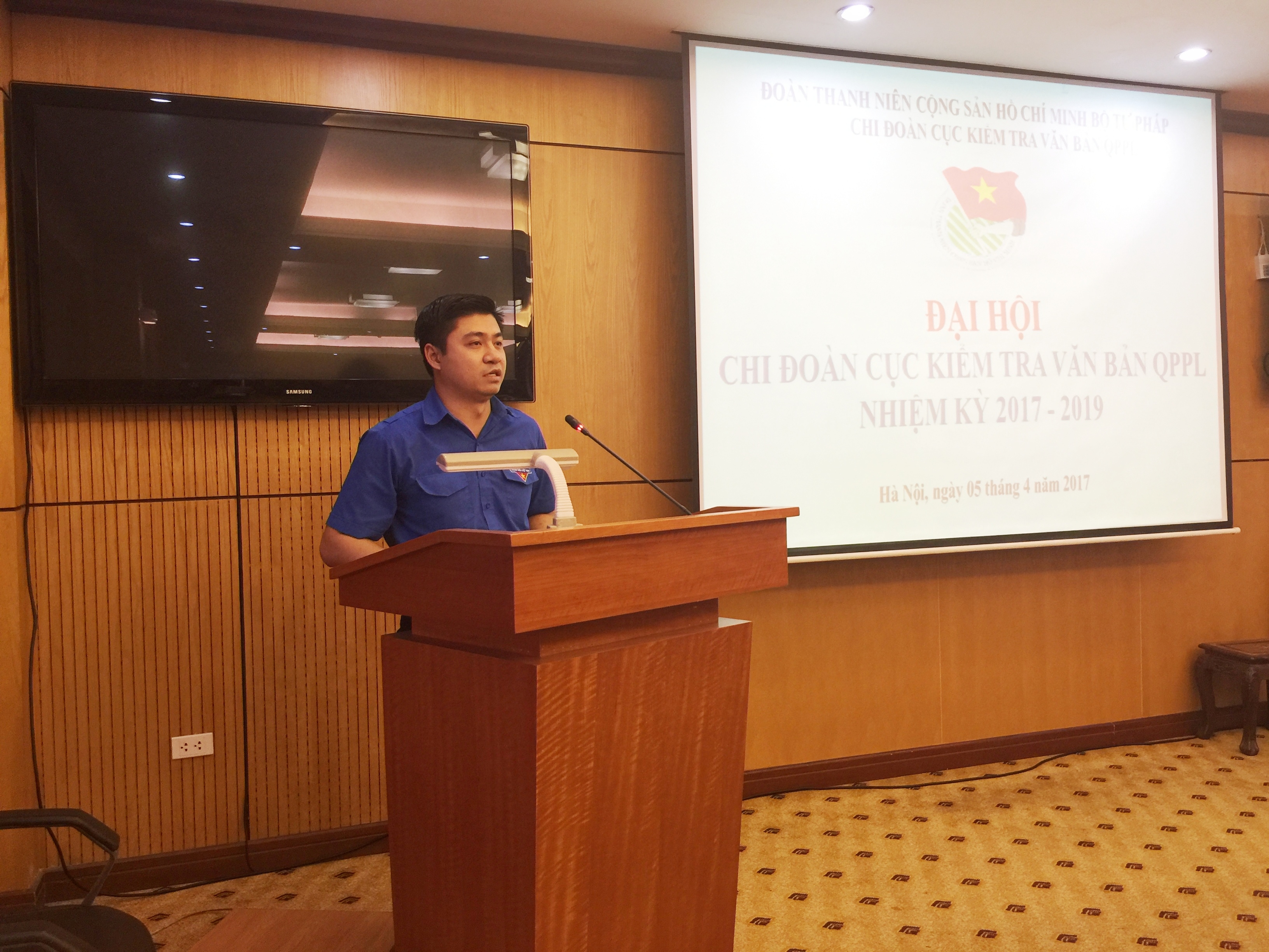 Thừa ủy quyền của Ban Thường vụ Đoàn Bộ, đồng chí Trịnh Xuân Tùng - Chánh văn phòng Đoàn thanh niên Bộ đánh giá cao kết quả mà Đoàn thanh niên Cục Kiểm tra văn bản QPPL đã đạt được trong thời gian qua. Đồng chí đề nghị Ban chấp hành nhiệm kỳ mới cần phân công cụ thể, chi tiết nhiệm vụ của các thành viên, tiếp tục là cầu nối giữa Chi ủy, Lãnh đạo Cục với đoàn viên, thanh niên trong Cục để thực hiện thành công phương hướng, nhiệm vụ đề ra trong nhiệm kỳ 2017 - 2019.