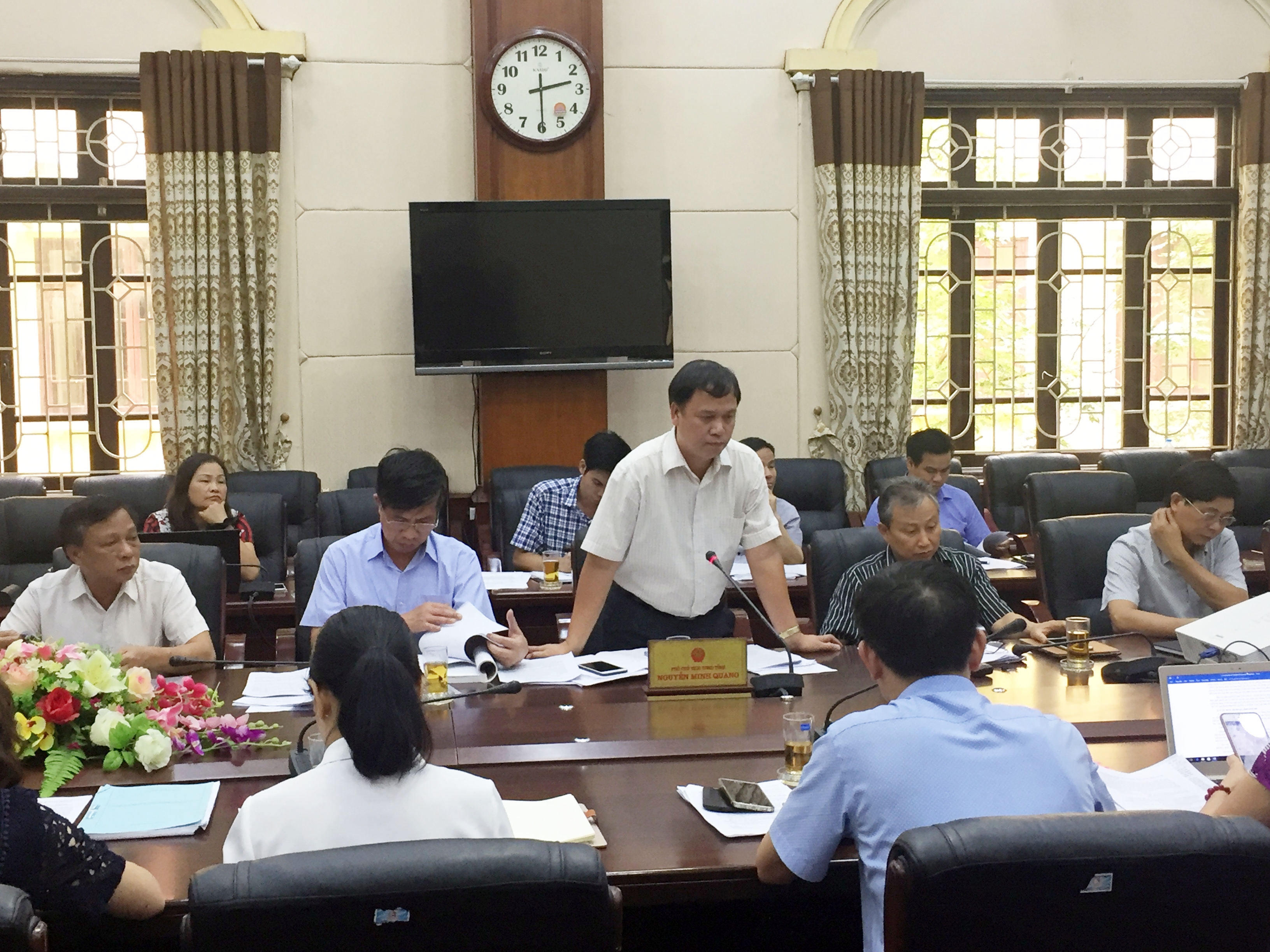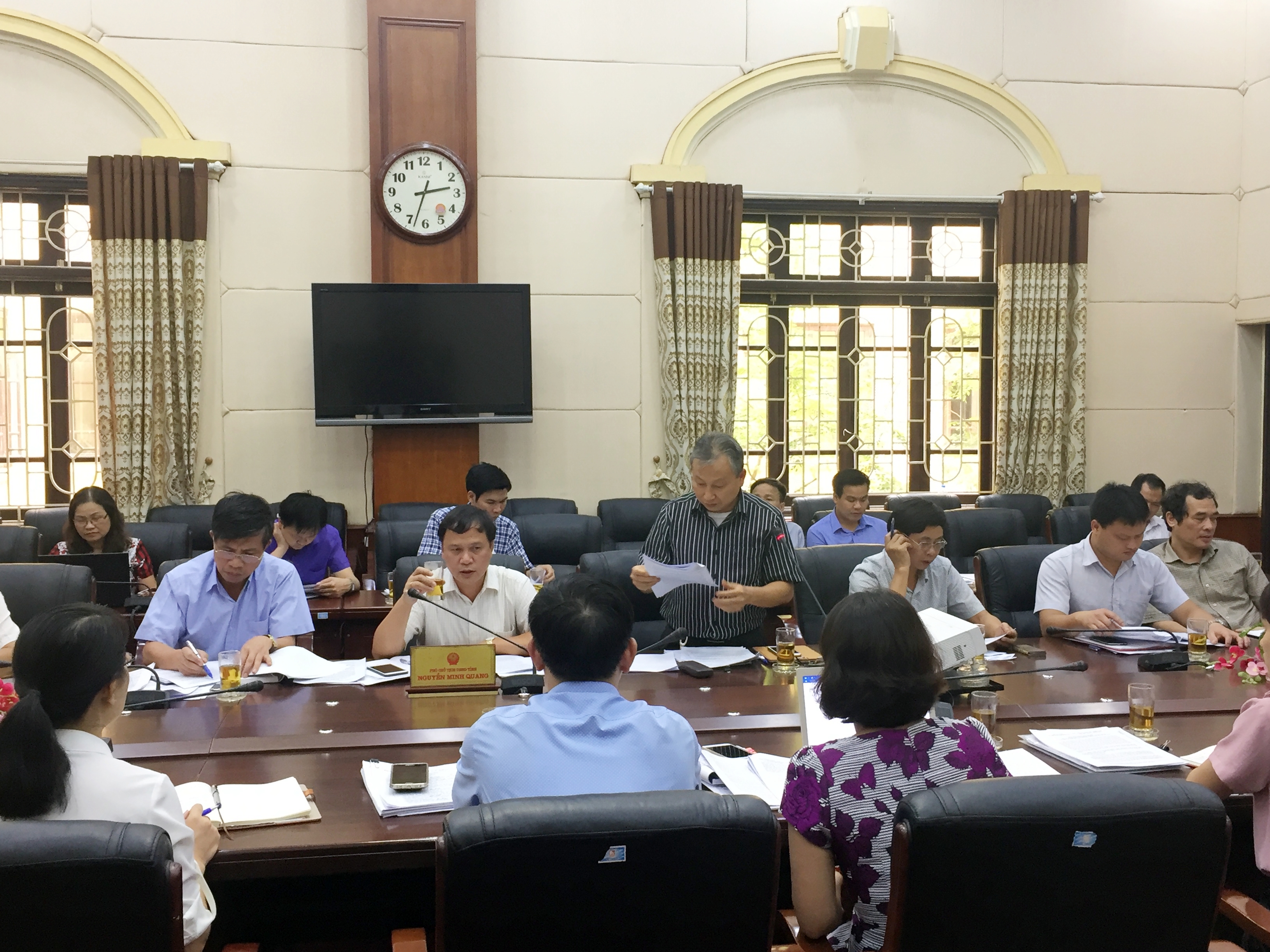 Bên cạnh việc nắm tình hình, kết quả chung về công tác xây dựng, ban hành và kiểm tra, xử lý, rà soát, hệ thống hóa văn bản QPPL, tháo gỡ những khó khăn, hướng dẫn nghiệp vụ kiểm tra, rà soát, hệ thống hóa văn bản QPPL, Đoàn công tác liên ngành cũng dành nhiều thời gian để thông tin, trao đổi với UBND tỉnh Hưng Yên về một số văn bản do HĐND và UBND tỉnh Hưng Yên ban hành từ năm 2014 đến ngày 25/6/2017 đang còn hiệu lực thi hành có nội dung chưa phù hợp với quy định pháp luật. Việc trao đổi, thảo luận diễn ra rất sôi nổi, tích cực. Bên cạnh việc tiếp thu ý kiến của Đoàn công tác về tính hợp pháp của văn bản, đại diện các Sở, ngành đã giải trình về tính thực tiễn trong nội dung của các văn bản được thảo luận. Đồng chí Nguyễn Minh Quang - Phó Chủ tịch UBND tỉnh Hưng Yên chỉ đạo Sở Tư pháp chủ trì, phối hợp với các Sở, ngành liên quan nghiêm túc tiếp thu các ý kiến của Đoàn Công tác, đồng thời yêu cầu, phải quán triệt tới các cơ quan tham mưu nhận thức rõ vấn đề trách nhiệm của cơ quan, người soạn thảo văn bản quy phạm pháp luật, không để xảy ra tình trạng văn bản sai về thể thức, kỹ thuật trình bày, trái pháp luật về nội dung. Đồng thời, qua buổi làm việc, đồng chí Phó Chủ tịch UBND tỉnh cũng mong muốn Bộ Tư pháp và các bộ, ngành quan tâm hơn nữa đối với công tác xây dựng, hoàn thiện thể chế của tỉnh Hưng Yên.