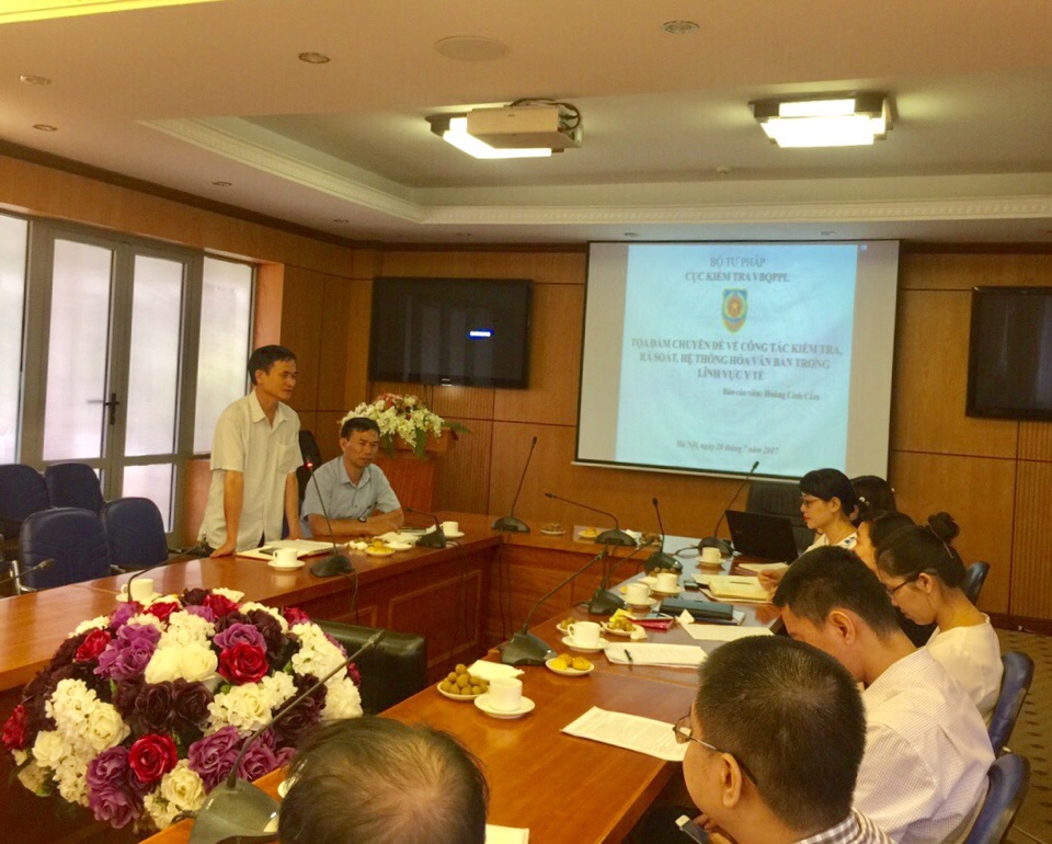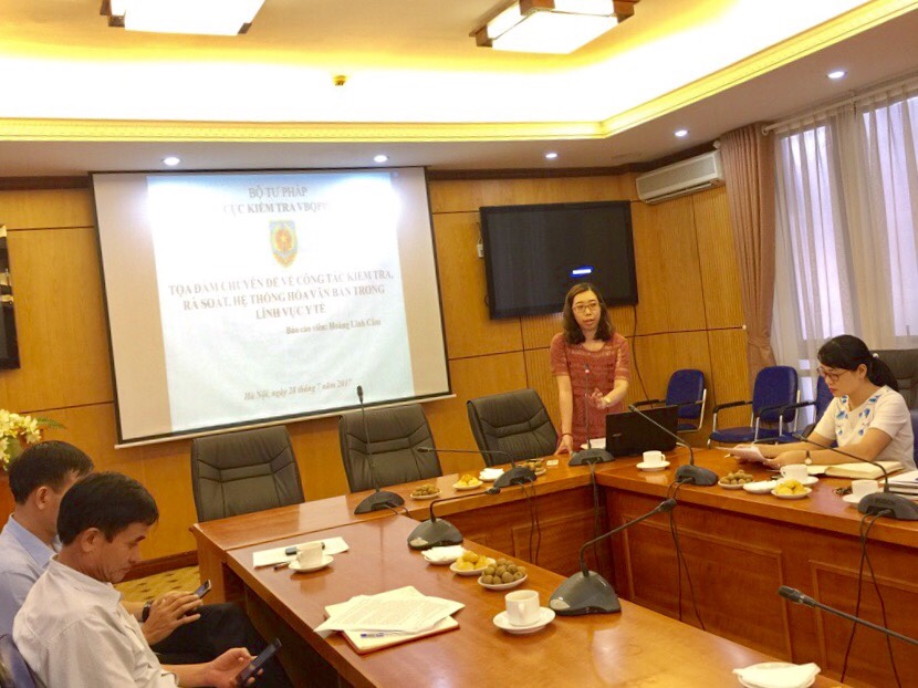 Tại Tọa đàm, đồng chí Hoàng Linh Cầm, Phó Trưởng phòng, Phòng Kiểm tra, rà soát, hệ thống hóa văn bản QPPL khối khoa giáo - văn xã được giao “chuyên quản” Bộ Y tế của Cục đã trình bày báo cáo tổng quát về tình hình thực hiện công tác kiểm tra, rà soát, hệ thống hóa văn bản của Bộ Y tế trong thời gian từ năm 2016 đến nay; đánh giá ưu điểm và hạn chế của Bộ Y tế trong các công tác này; kiến nghị những giải pháp nhằm nâng cao hiệu quả của công tác kiểm tra, rà soát, hệ thống hóa văn bản và chất lượng của văn bản QPPL của Bộ Y tế.