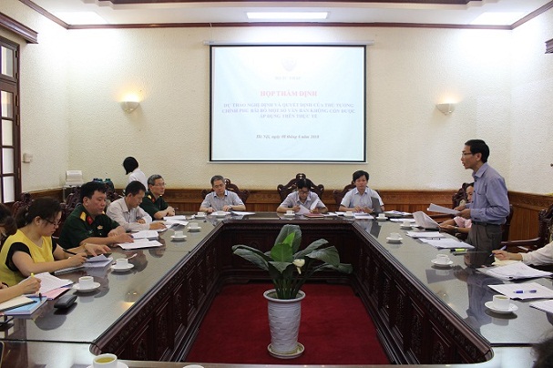 Cũng tại Cuộc họp, ông Nguyễn Duy Thắng, Trưởng phòng Phòng Pháp điển và hợp nhất văn bản QPPL, Cục Kiểm tra văn bản QPPL, Bộ Tư pháp đã báo cáo tóm tắt quá trình soạn thảo; lý do bãi bỏ các văn bản QPPL cũng như bố cục, nội dung các Dự thảo. Cụ thể: Tại Nghị quyết số 07/NQ-CP, Bộ Tư pháp được giao chủ trì xây dựng Dự thảo Nghị định, Quyết định của Thủ tướng Chính phủ bãi bỏ một số văn bản quy phạm pháp luật thuộc thẩm quyền ban hành của Chính phủ, Thủ tướng Chính phủ không còn áp dụng trên thực tế theo trình tự, thủ tục rút gọn trình Chính phủ, Thủ tướng Chính phủ trong Quý II năm 2018 (đã được đưa vào Chương trình công tác quý II của Chính phủ, Thủ tướng Chính phủ). Quá trình soạn thảo Dự thảo Nghị định, Quyết định của Thủ tướng Chính phủ đã tuân thủ đầy đủ các quy định của Luật Ban hành văn bản quy phạm pháp luật năm 2015, Nghị định số 34/2016/NĐ-CP ngày 14/5/2016 của Chính phủ quy định chi tiết và biện pháp ban hành Luật Ban hành văn bản quy phạm pháp luật, cụ thể như sau: (1) Các bộ, cơ quan: Quốc phòng; Công an; Lao động - Thương binh và Xã hội; Tài chính; Ngân hàng Nhà nước Việt Nam đã thực hiện rà soát hiệu lực của các Nghị định, Quyết định cần được bãi bỏ trong các lĩnh vực do mình phụ trách và có văn bản gửi Bộ Tư pháp về việc đề nghị bỏ toàn bộ nội dung của
