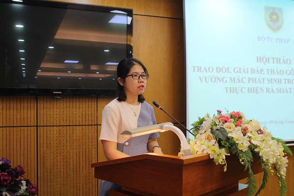 Trao đổi tại Hội thảo, bên cạnh các ý kiến báo cáo sơ bộ về tình hình triển khai nhiệm vụ rà soát tại bộ, ngành, Nhóm mình, hầu hết các ý kiến đều nêu một số khó khăn, vướng mắc gặp phải trong quá trình thực hiện nhiệm vụ, như: khối lượng hệ thống văn bản QPPL thuộc đối tượng rà soát của các bộ, cơ quan ngang bộ rất lớn, trong khi thời gian thực hiện nhiệm vụ ngắn, gấp gáp (tính đến hết tháng 6 năm 2020); tình hình dịch bệnh Covid - 19 kéo dài ảnh hưởng tới một số công việc thực hiện việc rà soát, nhất là công tác phối hợp giữa các cơ quan, giữa các Nhóm rà soát; số lượng văn bản phản ánh, kiến nghị của các cá nhân, cơ quan, tổ chức rất đồ sộ nhưng nhiều kiến nghị không cụ thể nội dung đề xuất sửa đổi, bổ sung pháp luật hoặc chỉ nêu các vướng mắc trong tổ chức thực hiện hoặc đề xuất xử lý vụ việc cụ thể; khó khăn trong bố trí các nguồn lực bảo đảm để thực hiện nhiệm vụ...