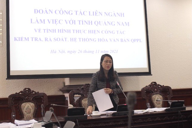 Đặc biệt, tại cuộc họp Đoàn công tác đã tập trung trao đổi với các Sở, ngành tỉnh Quảng Nam về một số văn bản có nội dung không phù hợp với quy định của pháp luật, các văn bản hành chính có chứa quy phạm và một số văn bản cần rà soát, được công bố hết hiệu lực nhưng căn cứ chấm dứt hiệu lực không đúng với quy định tại Luật Ban hành văn bản quy phạm pháp luật.