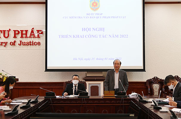 Ghi nhận và biểu dương những kết quả công tác đã đạt được trong năm 2021 của Cục Kiểm tra VBQPPL, phát biểu kết luận Hội nghị, Thứ trưởng Phan Chí Hiếu lưu ý một số nội dung công tác năm 2022, như sau: Tiếp tục nhận thức sâu sắc, toàn diện tầm quan trọng của công tác kiểm tra, rà soát, hệ thống hóa, pháp điển VBQPPL trong việc xây dựng, hoàn thiện pháp luật và tổ chức thi hành pháp luật; Xác định đúng trọng tâm, trọng điểm trong từng thời điểm và trong trong từng lĩnh vực công tác, nhất là sự vào cuộc sớm ngay từ khâu soạn thảo, thẩm định văn bản, đồng thời, nỗ lực kiểm tra 100% các VBQPPL của các Bộ, cơ quan ngang Bộ, chú trọng xử lý các văn bản sai phạm; Xác định trọng tâm trong công tác rà soát văn bản, phương hướng, nhiệm vụ Tổ công tác của Thủ tướng Chính phủ về rà soát VBQPPL trong năm 2022, đề xuất cụ thể chuyên đề rà soát năm 2022; Trong công tác pháp điển cần tập trung tuyên truyền, giới thiệu về giá trị sử dụng của Bộ Pháp điển; Chú trọng đôn đốc các Bộ trong công tác hợp nhất văn bản...