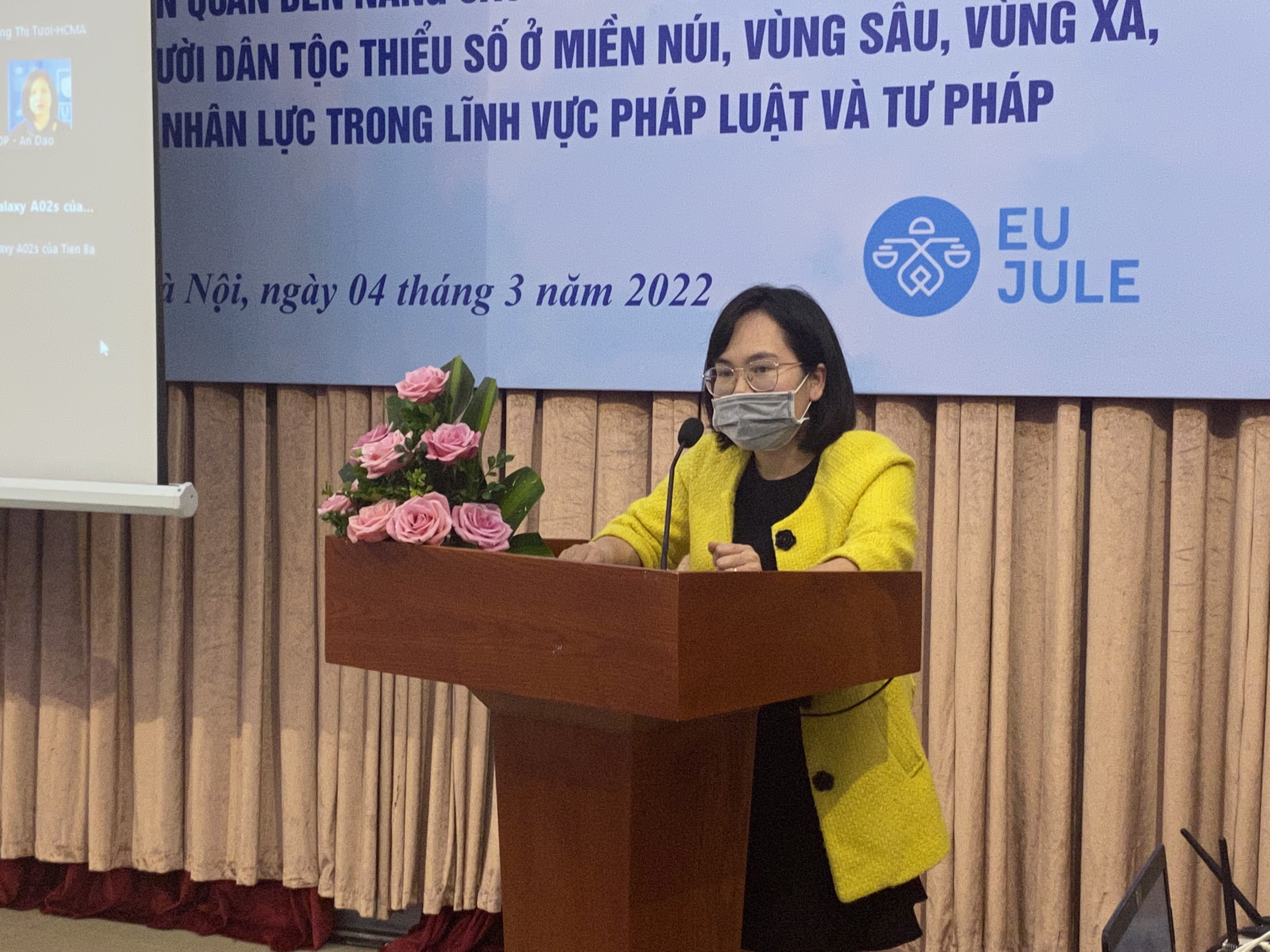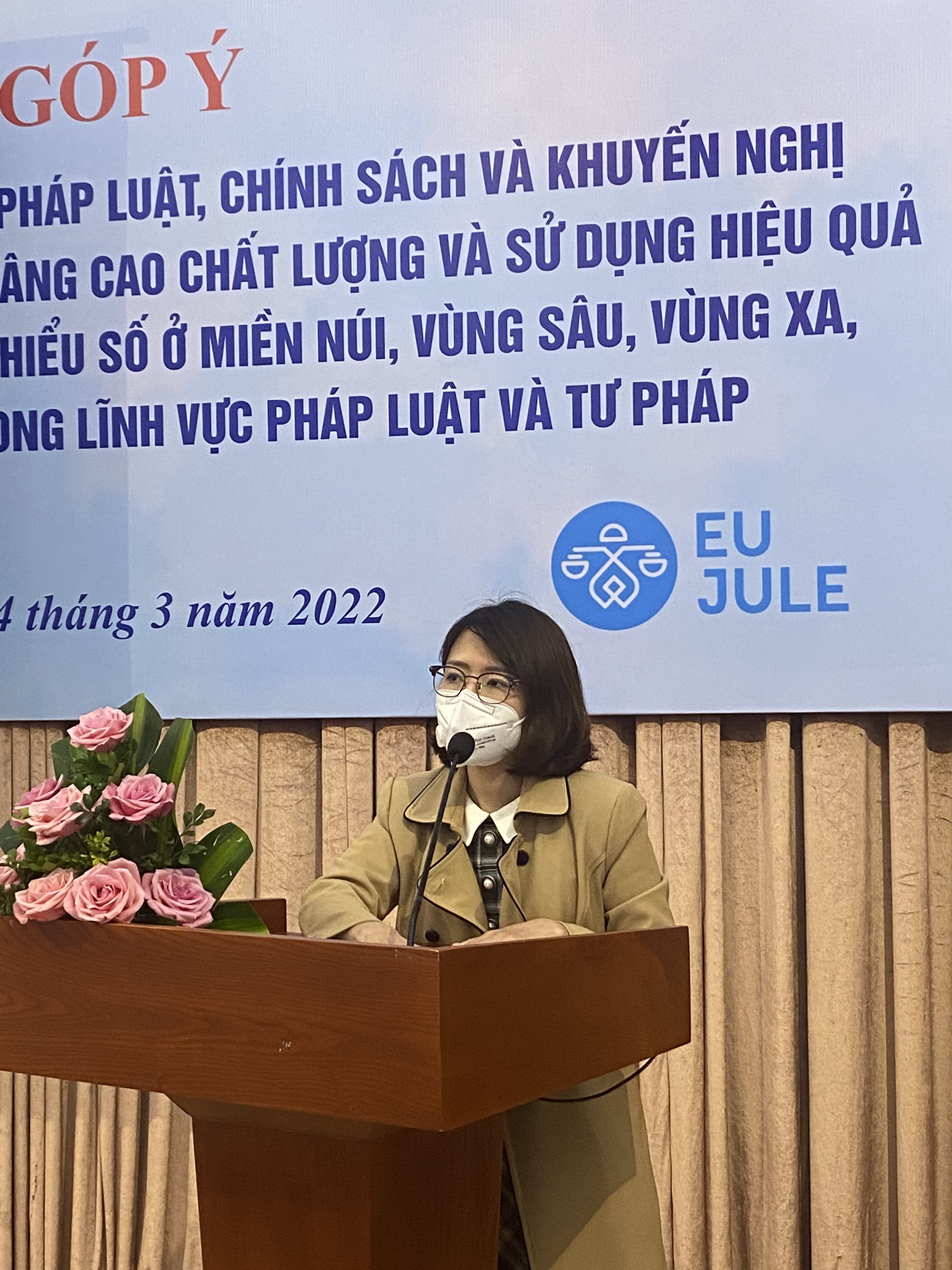 Đặc biệt, nguồn nhân lực là người dân tộc thiểu số làm trong lĩnh vực pháp luật trong những năm qua tỷ lệ vẫn còn khiêm tốn; chính sách thu hút, đãi ngộ đối với người dân tộc làm việc trong lĩnh vực pháp luật còn hạn chế. Vì vậy, các đại biểu tham dự đều nhất trí với sự cần thiết cũng như đánh giá cao ý nghĩa của các dự thảo Báo cáo. Bên cạnh đó, một số đại biểu cho rằng cần phải chỉnh sửa lại về mặt hình thức, bố cục, giải thích lại phạm vi điều chỉnh của Báo cáo để người đọc dễ tiếp cận hơn.