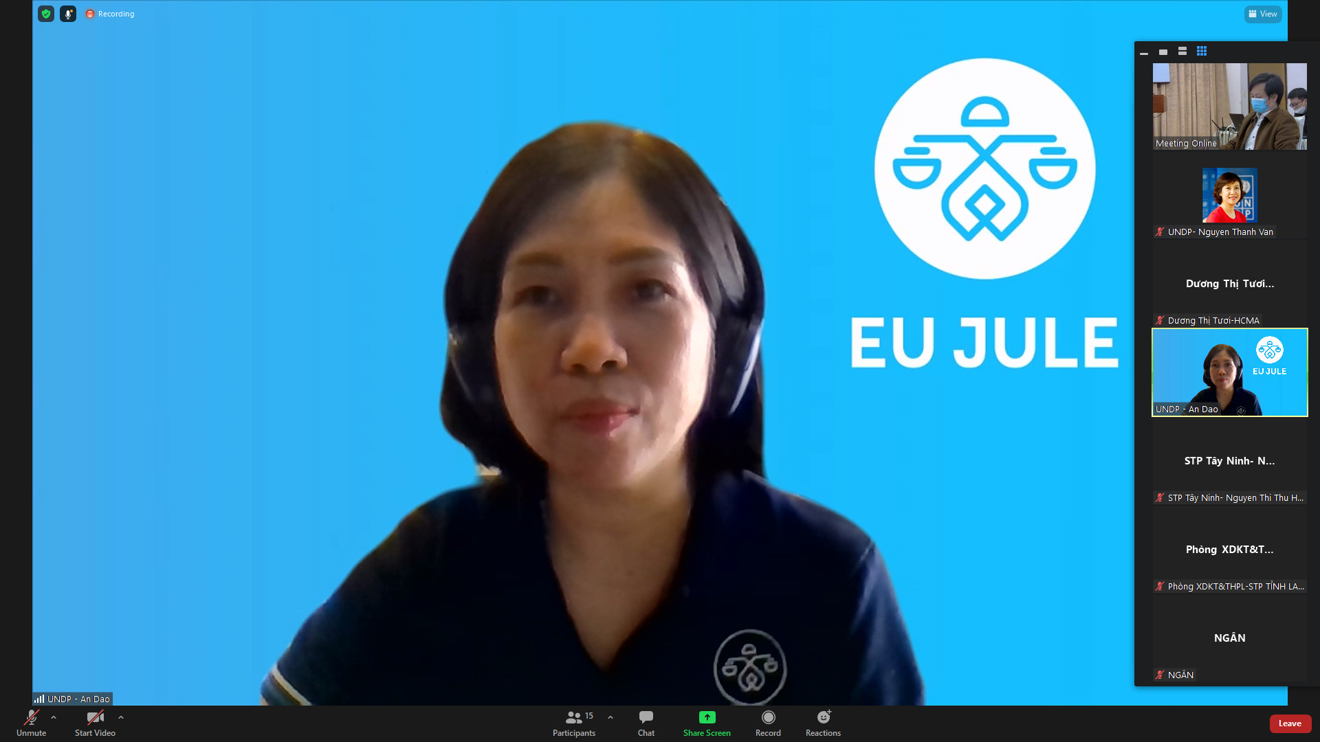 Cuộc họp do Đ/c Nguyễn Duy Thắng - Phó Cục trưởng Cục Kiểm tra văn bản chủ trì cùng với sự tham gia của các đại biểu là đại diện của các Bộ, ngành, cơ quan nghiên cứu chính sách, pháp luật về nguồn nhân lực là người dân tộc thiểu số và Sở tư pháp các tỉnh Hà Giang, Tuyên Quang, Tây Ninh, Lào Cai, Lai Châu, Sơn La, Hòa Bình. Về phía cơ quan tài trợ có bà Đào Thị Thu An, Quản lý dự án EU JULE, Chương trình phát triển Liên Hợp quốc.