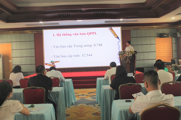 Tại Hội nghị, đồng chí Nguyễn Duy Thắng - Phó Cục trưởng Cục Kiểm tra văn bản QPPL đã giới thiệu khái quát về công tác xây dựng Bộ pháp điển và Bộ pháp điển Việt Nam. Đồng chí Nguyễn Duy Thắng đã trình bày thực trạng hệ thống pháp luật của Việt Nam hiện nay và sự cần thiết của công tác xây dựng Bộ Pháp điển. Trong bối cảnh hệ thống pháp luật Việt Nam phức tạp, cồng kềnh, tản mát, phân tán, có nhiều chủ thể ban hành nhiều loại văn bản QPPL (có gần 9000 văn bản QPPL do các cơ quan Trung ương ban hành), việc xây dựng Bộ pháp điển là hết sức cần thiết, giúp cá nhân, tổ chức tiện lợi trong việc tìm kiếm, tra cứu; bảo đảm tính công khai, minh bạch của hệ thống pháp luật và góp phần nâng cao sự tin tưởng của người dân vào hệ thống pháp luật; góp phần nâng cao tính thống nhất, tính đồng bộ của hệ thống QPPL và tạo thuận lợi trong quá trình xây dựng, hoàn thiện hệ thống pháp luật. Đồng chí Nguyễn Duy Thắng đã giới thiệu về các hình thức pháp điển; nguyên tắc thực hiện pháp điển; cấu trúc của Bộ Pháp điển; lộ trình và tiến độ xây dựng Bộ Pháp điển hiện nay.