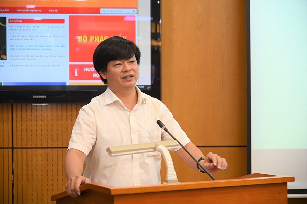 Tại hội nghị, đồng chí Trần Thanh Loan, Phó Trưởng phòng phụ trách Phòng Pháp điển và hợp nhất văn bản QPPL đã giới thiệu Tài liệu truyền thông tuyên truyền về Bộ pháp điển. Tài liệu gồm có Tờ rơi và Video bao gồm các nội dung chính: (1) giới thiệu khái quát về Bộ Pháp điển Việt Nam (khái niệm, cấu trúc Bộ pháp điển); (2) hướng dẫn, khai thác sử dụng Bộ pháp điển. Đặc biệt tại Tờ rơi có mã QR giúp người dùng truy cập vào Bộ pháp điển một cách thuận lợi, nhanh chóng; có địa chỉ, số điện thoại của Cục Kiểm tra văn bản QPPL, Bộ Tư pháp để các cá nhân, tổ chức liên hệ phản ánh hoặc cần hướng dẫn thêm hay giải đáp thắc mắc. Thông qua Tờ rơi, Video này, cá nhân, tổ chức thao tác theo hướng dẫn đạt kết quả nhanh chóng, tra cứu được Bộ pháp điển một cách thuận tiện, dễ dàng.