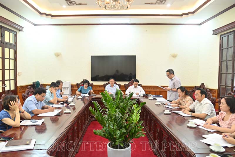 Báo cáo tại cuộc họp, Cục trưởng Cục Kiểm tra văn bản QPPL Hồ Quang Huy cho biết, trên cơ sở nhiệm vụ được giao tại Nghị quyết số 82/NQ-CP ngày 05/6/2024 của Chính phủ về phiên họp thường kỳ tháng 5 năm 2024; Nghị quyết số 93/NQ-CP ngày 18/6/2024 của Chính phủ về nhiệm vụ, giải pháp trọng tâm để thúc đẩy tăng trưởng, kiểm soát lạm phát và ổn định kinh tế vĩ mô và chỉ đạo của Bộ trưởng tại phiên họp giao ban Thủ trưởng các đơn vị thuộc Bộ ngày 11/6/2024 về việc nghiên cứu, báo cáo Thủ tướng Chính phủ thành lập Ban Chỉ đạo để chỉ đạo các bộ, cơ quan, địa phương rà soát các vướng mắc trong các quy định pháp lý, Cục Kiểm tra văn bản QPPL bước đầu đã nghiên cứu, xây dựng dự thảo Quyết định thành lập, Quy chế tổ chức và hoạt động của Ban Chỉ đạo rà soát, xử lý vướng mắc trong hệ thống văn bản quy phạm pháp luật (sau đây gọi tắt là “Ban Chỉ đạo") và dự thảo Công văn, tài liệu gửi các bộ, cơ quan, địa phương đề nghị triển khai thực hiện nhiệm vụ theo yêu cầu của Chính phủ.