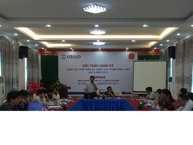 Tại Hội thảo, các đại biểu đã tập trung trao đổi, thảo luận về tình hình công tác pháp điển hệ thống QPPL của từng Bộ, ngành đối với từng đề mục. Qua đó chỉ ra những tồn tại hạn chế, khó khăn, vướng mắc cũng như những thuận lợi, những kết quả tích cực đạt được để định hướng triển khai tiếp trong quý III/2015. Đồng thời, Hội thảo cũng đã trao đổi, thảo luận các giải pháp nhằm tháo gỡ khó khăn, vướng mắc để đề xuất triển khai thực hiện trong thời gian tới.