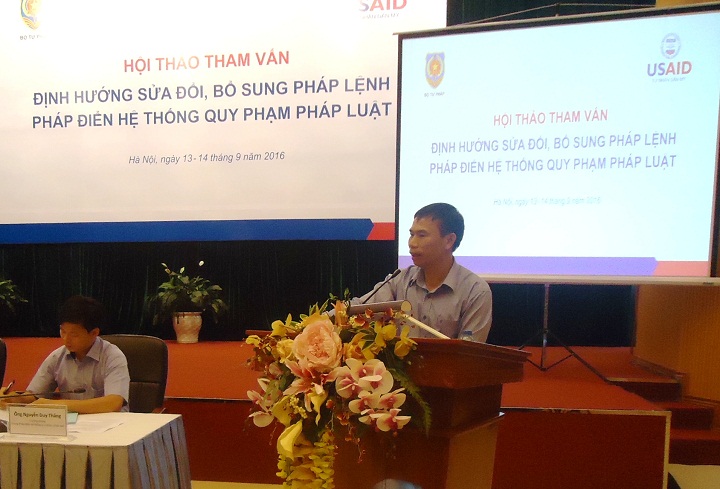 Thứ nhất, về những quy định còn hạn chế, không phù hợp trong Pháp lệnh pháp điển hệ thống QPPL và Nghị định số 63/2013/NĐ-CP gây khó khăn cho công tác xây dựng Bộ pháp điển