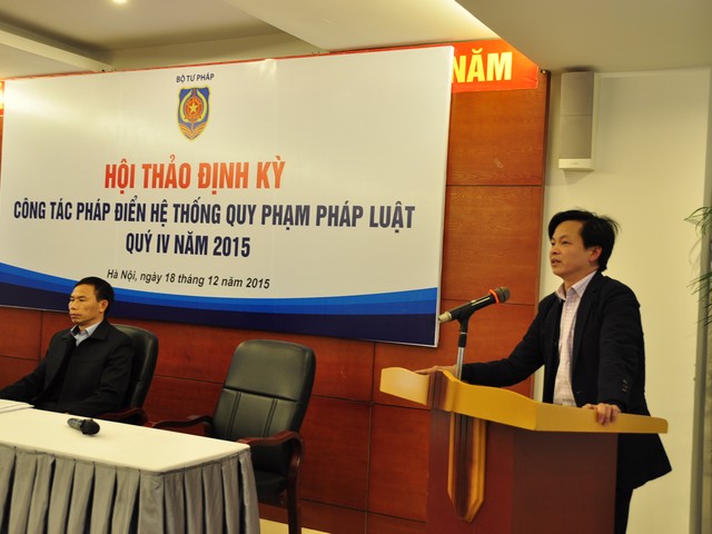 Chiều ngày 21/12/2015, Bộ Tư pháp đã tổ chức thành công cuộc họp Hội đồng thẩm định kết quả pháp điển 03 đề mục: Hòa giải ở cơ sở; Trách nhiệm bồi thường của Nhà nước và Thực hành tiết kiệm, chống lãng phí. Cuộc họp do Thứ trưởng Đinh Trung Tụng - Chủ tịch Hội đồng chủ trì, cùng với sự tham dự của 09 thành viên là đại diện cho các Bộ, ngành liên quan (Vụ Pháp luật - Văn phòng Chính phủ; Bộ Tài chính; Bộ Công an; Tòa án nhân dân tối cao; Vụ Phổ biến, giáo dục pháp luật - Bộ Tư pháp; Cục Bổi thường nhà nước - Bộ Tư pháp) và đại diện một số đơn vị thuộc Bộ Tư pháp (Cục Kiểm tra văn bản quy phạm pháp luật; Vụ Pháp luật hình sự - hành chính; Vụ Các vấn đề chung về xây dựng pháp luật).